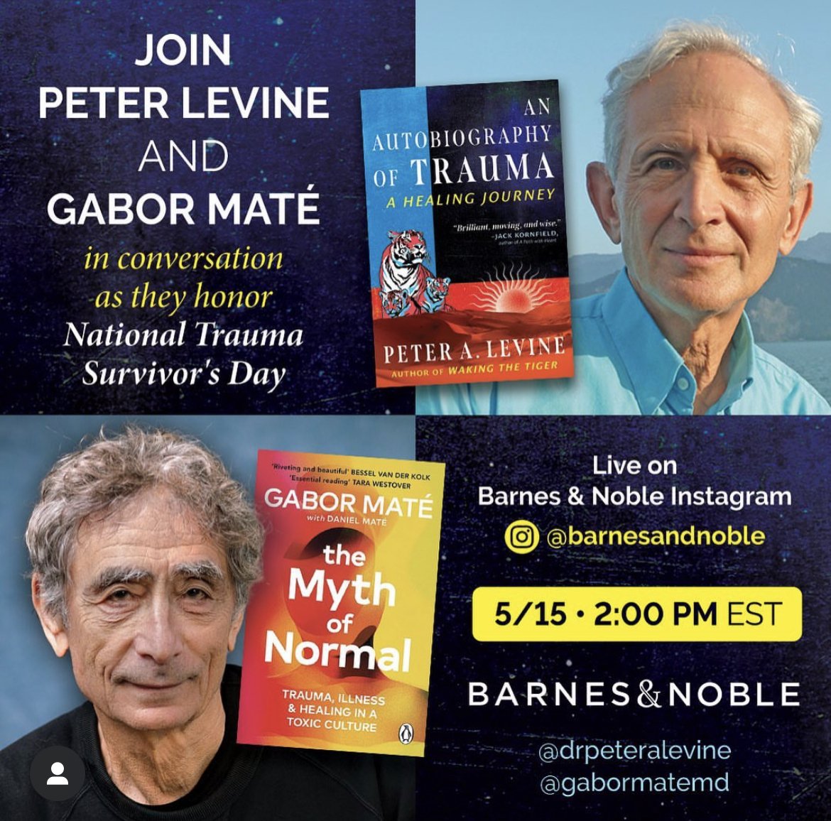 Join Barnes & Noble for a live conversation with Peter and Gabor as they honor National Trauma Survivor’s Day.