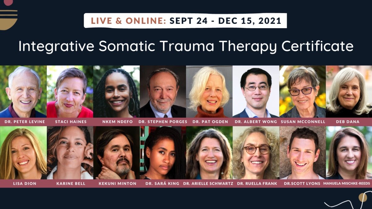 The Embody Lab brings together the world’s most renowned Somatic Trauma Therapy teachers into one Somatic Trauma Certificate Program! This is a unique opportunity to study with teachers such as Dr. Stephen Porges, Staci Haines, Dr. Peter A Levine, Nkem Ndefo, Dr. Albert Wong, Dr. Arielle Schwartz, Dr. Sara King, Dr. Pat Ogden, and many more.